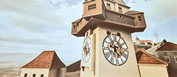 Ältestes gefundenes Brandgrab der Steiermark aus 1300 v. im Innenhof des ehemaligen Karmeliterklosters am Karmeliterplatz. Griffzungenschwert aus Bronze aus einer Grazer Schottergrube. Im Bereich des Vulkanmassivs bei Klöch erhebt sich der 459 m hohe erloschene Vulkan Königsberg. Wegen seiner steilen Flanken wird er schon früh, seit dem 4. Jahrtausend v.Chr. befestigt. Aus der Wallanlage der Spätbronzezeit stammt ein "Feuerbock", ein Halbmond- bzw. stierhornähnliche Keramikgefäß, das als Spießhalterung, aber auch als Mondkalender Verwendung findet. Als Chunigesberg wird der Königsberg erstmals 1406 erwähnt, der zur Kuruzzenzeit und auch während des 2. Weltkrieges als Beobachtungswarte genutzt wird. |